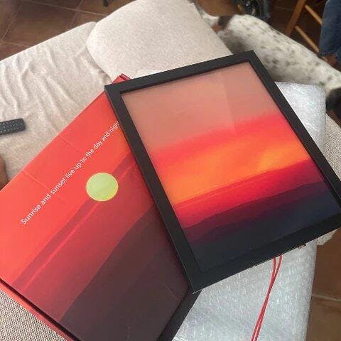 Your order includes everything you need: the elegant Sunrise Canvas, its dedicated charger for effortless use, and a beautifully crafted custom gift box, making it perfect for gifting or enjoying yourself.